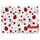 Simple and elegant pattern featuring ladybugs clipart in red, black and white colour with circles and dots in red and black and a personalised name label.