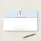 Personalised sticky notes with a stylish red cadaceus symbol with the letters R N on either side. Simple minimalist design. White and blue split colour background. Text says: A note from your nurse. Can be edited/ removed as you see fit.