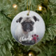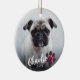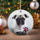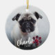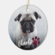 Simple Red Plaid Paw Script Photo Pet Christmas Ceramic Ornament