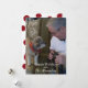 A fun and festive design with a single photo on the front side and red dots on a white background on the back side. The photo covers the entire front of the card. White typography is at the bottom from of the card displaying your holiday message. A modern look for your holiday greeting cards. You may change the colour of the font by using the edit design option from the product page.