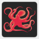 Simple Red Vector Art Octopus Silhouette Square Sticker
