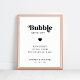 Inform your guests about bubble send off with this modern, elegant poster, featuring retro script, black heart and your custom text. Easily add your own details by clicking on the "personalise" option.