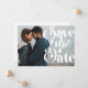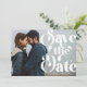 Simple Retro Typography Save the Date Photo Announcement. Customise all graphics and text to match you wedding colours.