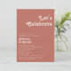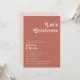 This simple retro vibes | old rose let's celebrate invitation is perfect for your classic funky vintage earth tones celebration. The design features a minimalist hippie rustic boho font. The neutral southwest desert colour palette and earthy bohemian mid-century lettering combine for a perfect, minimal modern western destination design. Feel free to change the colour add your own artwork, graphics, or photos. If you have any questions about the design of this product, please feel free to reach out to us!