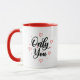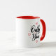 The mug features a striking red interior and matching red handle, adding a vibrant pop of color that beautifully complements the design on the front. Printed on high-quality white ceramic, the artwork appears crisp, clean, and eye-catching from every angle. Its classic shape makes it comfortable to hold, while the glossy finish gives it a polished, modern look.