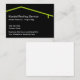 Simple Roofing services large business cards in a visually powerful design that has a roof graphic and visiting card layout you can edit online. Works a calling card for a Roofer, home services business, or home remodeling company.