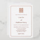 This simple modern Chinese wedding invitation features a real rose gold foil double happiness symbol and a text in a modern sans serif font. The rounded corners of the font are matching to the rounded corners of the double happiness symbol and the frame.