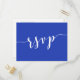 Custom simple royal blue wedding RSVP postcards with customisable text