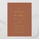 Traditional style gold foil wedding invitation with a simple design featuring your monogram along with accent words in an elegant script over a terracotta / burnt orange / rust coloured background.  This classic wedding invitation is great for a formal wedding.