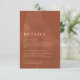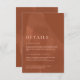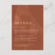 Simple rust wedding colour Details card with the wedding main information. Rust colour theme crates a fresh, stylish and bohemian aesthetic.