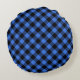 Simple Rustic Blue Black Buffalo Plaid Checks Round Cushion