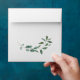Beautiful simple minimalist elegant envelope with green watercolor meadow plants leaves. This green rustic botanical foliage design looks fresh and cosy.