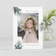 Modern rustic Christmas two photo greeting features a simple and clean design with watercolor Christmas tree branches and beautiful happiest holidays typography.