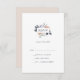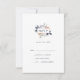 This simple rustic floral RSVP card is perfect for your elegant vintage spring wedding. It is designed with classic rose flowers, simplistic blush peonies, and dusty purple hydrangeas. All of which is accompanied by touches of green eucalyptus and navy leaves. With all of these light colourful watercolor flowers, you are sure to get the feel you desire.