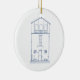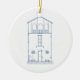 New Home Blueprint Drawing Blue and White New Home First Christmas Double-Sided Round Ceramic Ornament. Keep drawing of house on front or upload your own image. All text on back can be customised. This image is from my original ink on mylar hand drawing of a small rustic cottage with charming architectural details and small stone benches each side of door. I modified the image digitally to look like a blueline style blueprint drawing(most commonly used late 20th century to early 21st century). This type of construction drawing printing process uses an ammonia process and is currently becoming less common as large format blackline printers are used instead.
