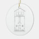 New Home Ink Drawing Black and White New Home First Christmas Double-Sided Round Ceramic Ornament. Keep drawing of house on front or upload your own image. All text on back can be customised. This image is from my original ink on mylar hand drawing of a small rustic cottage with charming architectural details and small stone benches each side of door.