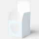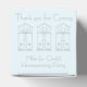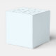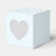 Tiny House Ink Drawing Light Blue Housewarming Party Square Favour Box with Heart Window. Personalise it with a name or customised text. This image is from my original ink on mylar hand drawing of a small rustic cottage with charming architectural details and small stone benches each side of door. The house is set into a hillside with natural landscaping and stone walls on each side.