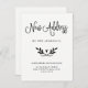 This trendy change of address postcard features trendy, rustic black script that says "new address" with hand-drawn foliage and a heart.