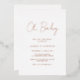 Modern rose gold foil baby shower invitation featuring a simple design with "Oh Baby" in a rustic style script typography. This elegant invitation with a minimalist layout is perfect for a girl baby shower.