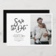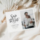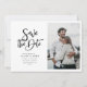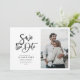 simple minimal script photo save the date wedding card. The text and colours can be edited.