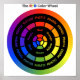 This simple RYB (Red, Yellow, Blue) colour wheel has RGB hex codes and colour names.