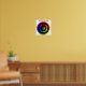 This simple RYB (Red, Yellow, Blue) colour wheel has RGB hex codes and colour names.