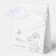 Unique simple wedding favour box featuring romantic and elegant sage green flowers and butterflies