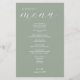 Simple sage green elegant wedding menu.
