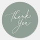 Simple Sage Green Calligraphy Script Thank You Classic Round Sticker