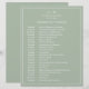 Simple Wedding Timeline featuring a modern yet elegant design with your two letter monogram at the top and your details surrounded by a thin border. All text is in white over a sage green background and may be changed to any colours you wish by clicking the "customise" button. A chic and stylish design that is great for a minimalist couple.