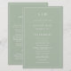 Simple Wedding Program featuring a modern yet elegant design with your two letter monogram at the top and your details surrounded by a thin border. All text is in white over a sage green background and may be changed in the design editing tool. The front has your order of ceremony and the back has your wedding party and thank you message. A chic and stylish design that is great for a minimalist couple. These cheap wedding programs are printed on sheets of paper for a budget friendly option.