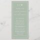 Modern Wedding Program featuring a simple yet elegant design with a traditional layout. Your two letter monogram is at the top along with your details surrounded by a thin border. All design elements are white over a sage green background and may be changed in the design editing tool. A minimalist design with a classic feel that is great for a formal wedding.