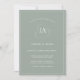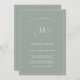 Simple Sage Green Monogram Wedding Invitation. Stylishly impress your wedding guests with this trendy moss green wedding invitation featuring a beautiful white script, with the bride and groom's initials on a sage green background. This Invitation has a stunning moss green design, with modern and minimal vibes, perfect for your simple, trendy, minimalist wedding.