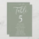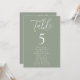 Modern wedding seating chart featuring "Table" displayed in a white script with the table number and guest names shown below on a sage green background. The design repeats on the back. To order the table number seating chart, edit each card with the table number and guest names and add it to your cart. Designed to coordinate with our Simple Script wedding collection.