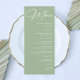 This personalized Simple Sage Green Wedding Drink Menu Card is a chic addition to your celebration, perfect for displaying cocktails and beverages in style. These wedding menu designs elevate your table setting and offer elegant wedding menu ideas. Ideal as wedding menu cards and matching wedding menus for a sage green wedding or green wedding theme. Pairs beautifully with a green wedding, sage green wedding theme, olive green weddings, white and green wedding, italian wedding, victorian wedding, and vintage italian weddings.