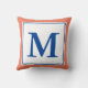 Simple Salmon and Deep Blue Monogrammed Cushion