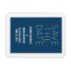 Simple Save the Date Magnet in dark blue and white with a modern typography design. This trendy and chic save the date magnet is easy to customise with your wedding details. For more customisation options, click on the Customise It button.