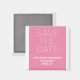 Simple Save the Date Magnet in pink and white with a modern typography design. This trendy and chic save the date magnet is easy to customise with your wedding details. For more customisation options, click on the Customise It button.