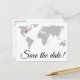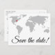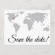 A simple save the date postcard with a world map on the front. Marker on map can be moved to show the appropriate location where the celebrations will take place!