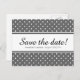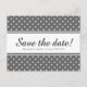 Simple save the date postcards with grey and white polka dots pattern. Modern chic polkadot print design for elegant wedding party. Trendy and fun contemporary style. Custom background colour and personalised template text on the back. Change the quantity to get the cheapest price per card.
