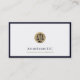 Stand out with these high-quality business cards featuring a striking gold emblem with scales of justice on a clean white background, framed in a rich navy blue border. Ideal for attorneys and legal services to network and introduce their professional identity.