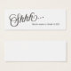 This simple bachelorette size card insert featuring shhh in a calligraphy font goes perfectly in our gatsby inspired black white and gold bachelorette party invitations or any! Just type in your bachelorette's details and insert these little cards in the invitations so you are sure the bride gets just the right size!