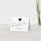Simple modern elegant white black graduation thank you folded card featuring a chic handwriting calligraphy script with a grad hat. +++++++++++ Personalise it with your text and signature on the front and inside!