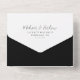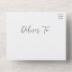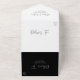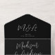 Modern wedding invitation featuring your monogram initials, names, and wedding details in a simple white script with a black background. The black and white all-in-one wedding invitation includes an RSVP postcard.