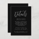 Modern wedding details cards featuring your wedding details displayed in white lettering with a black background. Add details such as hotel accommodations, welcome reception information, wedding website, etc. Designed to coordinate with our Simple Script wedding collection.