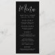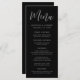 Simple wedding menu featuring "Menu" displayed in a white script with a black background. Personalise the black and white wedding menu by adding your names, wedding date, and menu information. Designed to coordinate with our Simple Script wedding collection.
