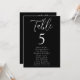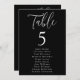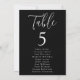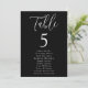 Modern wedding seating chart featuring "Table" displayed in a white script with the table number and guest names shown below on a black background. The design repeats on the back. To order the table number seating chart, edit each card with the table number and guest names and add it to your cart. Designed to coordinate with our Simple Script wedding collection.