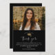 Simple Script Black and White Photo Graduation Thank You Card with elegant gold foil cap and minimalist typography graduate. Click the edit button to customise this design.