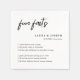 Create a unique and engaging experience for your wedding guests with our Simple Script Black and White Wedding Fun Facts Napkins. Perfect for receptions, cocktail hours, or rehearsal dinners, these napkins combine a minimalist black-and-white design with personalised fun facts about the couple. Designed to complement a variety of wedding themes, from modern to elegant, these napkins add a personal and interactive element to your celebration. Delight your guests with interesting titbits while enhancing the overall aesthetic of your special day. Customisable and stylish, they’re a thoughtful detail for any wedding event.