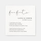 Create a delightful and interactive experience for your guests with our Simple Script Black and White Wedding Fun Facts Napkins. Perfect for wedding receptions, cocktail hours, engagement parties, or rehearsal dinners, these napkins feature an elegant, minimalist script design that complements a variety of wedding styles, from modern to traditional. Share fun and unique details about the couple to spark conversations and add a personal touch to your special day. These customisable napkins are a charming and functional addition to any wedding celebration, blending style and sentiment effortlessly.